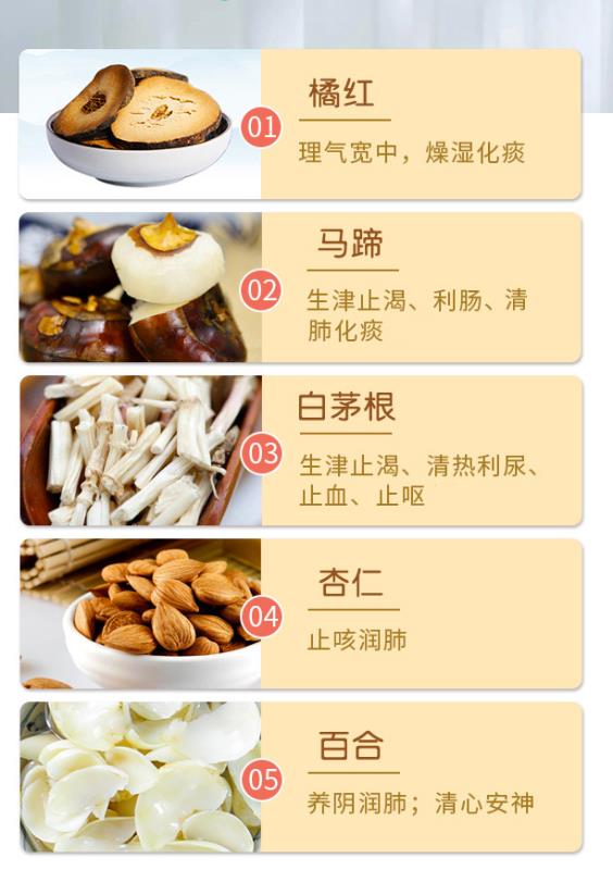 冬天时爸爸妈妈们尽量让宝宝吃温热的食物,以保护宝宝娇弱的脾胃。像这些药食同源食物,如橘红、百合、马蹄、白茅根、杏仁等具有止咳化痰、润燥清肺的功效。